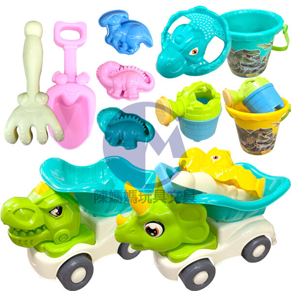 ★內容物:沙灘桶*1、沙灘車*1、沙漏網1、挖鏟*2、模具*3、花灑*1