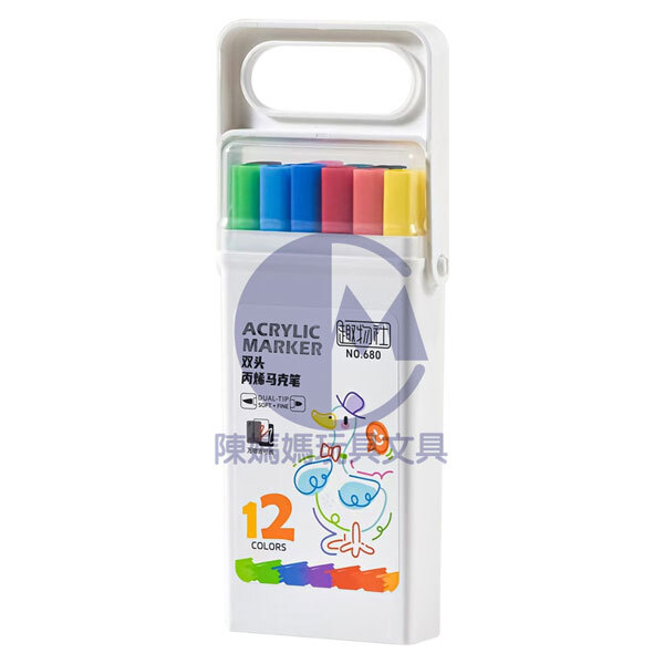 38-68012<<(12色)雙頭方桿丙烯馬克筆>>