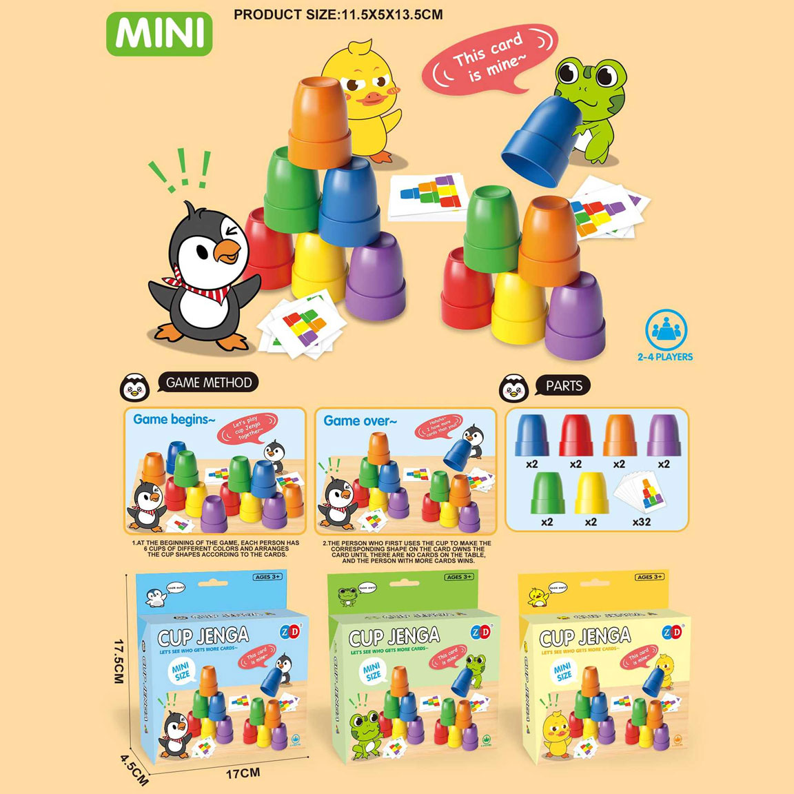 1. 遊戲開始時,每個人有6 個不同顏色的杯子,並根據卡片排列杯子的形狀