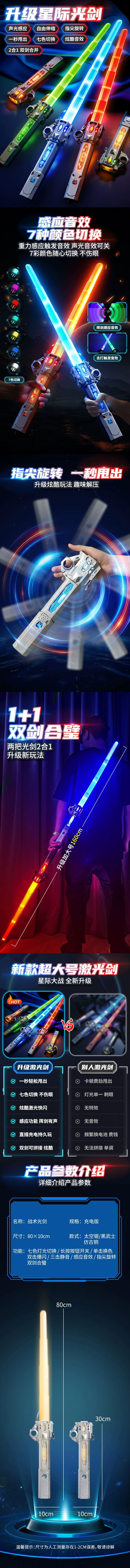 ★伸縮設計/酷炫七彩燈光/戰鬥音效