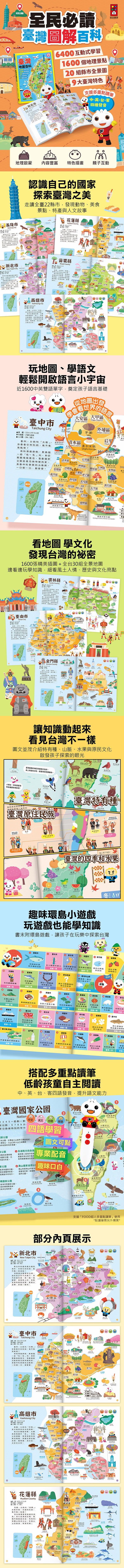 ★認識自己的國家,探索臺灣之美,近1600雙語單字,6400互動式學習,精美縣市全景百科地圖!