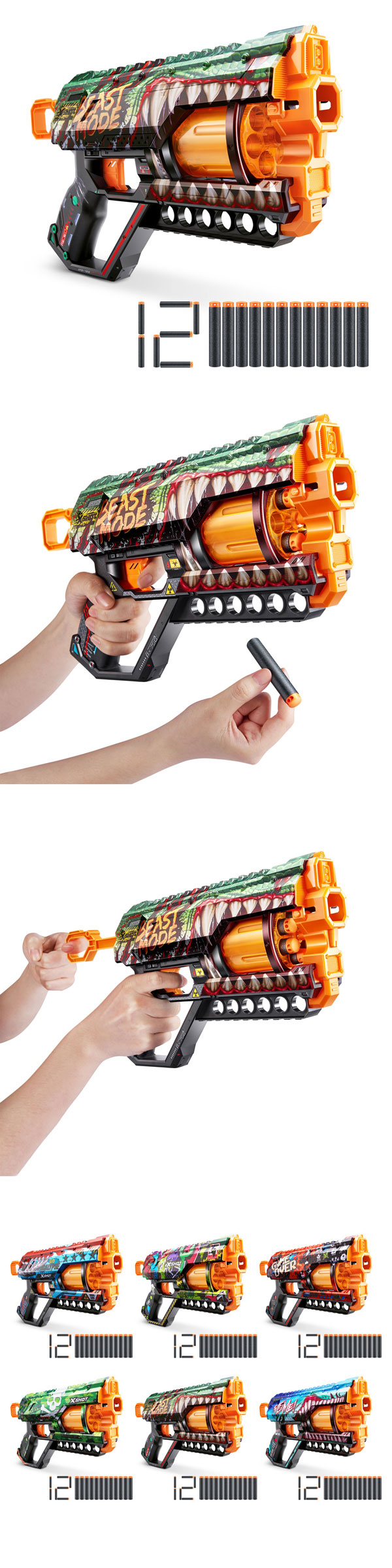 ★12發泡棉彈轉輪彈匣可裝填6發,槍體下方還可儲放6顆備用彈