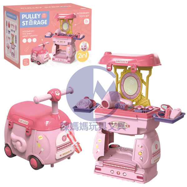 美妝套裝包括:鏡子、吹風機、仿香水、口紅等。 這個化妝組有很多配件,讓你的孩子忙碌幾個小時的樂趣。
