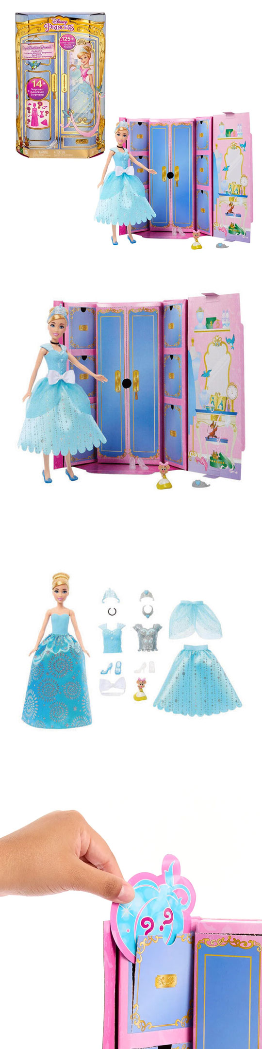 ★充滿驚喜的開箱體驗!打開包裝看到灰姑娘仙杜瑞拉娃娃與12件灰姑娘專屬的服飾與配件
