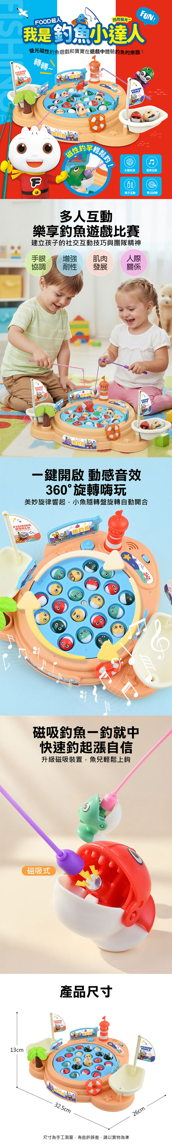 ★專為 3 歲以上幼兒打造的互動釣魚遊戲,旋轉釣魚池、音樂音效、親子競賽玩法於一身,是一款結合娛樂、學習與感官刺激的全方位兒童玩具