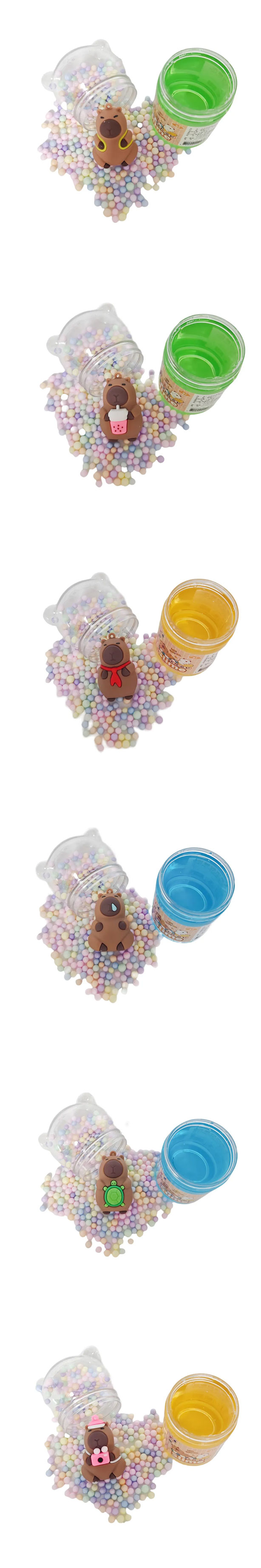 ★史萊姆顏色透亮,採用新穎小熊造型的雙開瓶設計,超可愛,下面是史萊姆,上面是馬卡龍顏色的保利龍球和隨機款公仔一隻