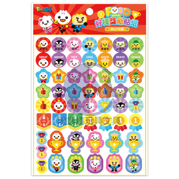 ★《FOOD超人好棒獎勵貼紙》內含275張不同造型的獎勵貼紙,背卡還可以化身成集點卡,適合培養小朋友自信心、成就感,同時有不同標語讓孩子享受榮耀與鼓勵!