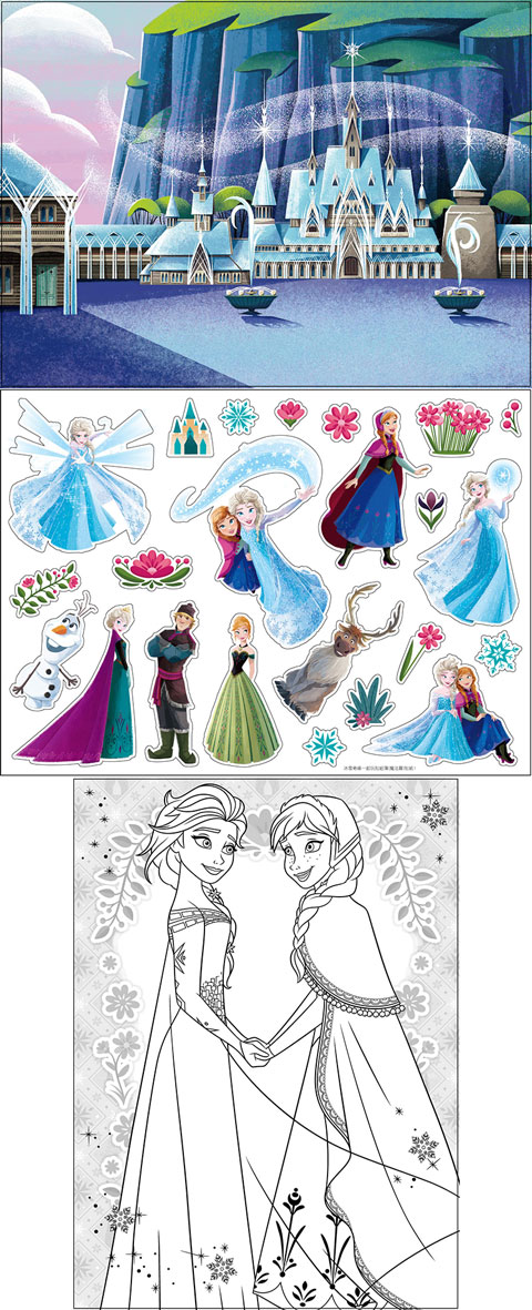 ★內容含4個冰雪奇緣場景+4頁換裝貼紙和6頁冰雪奇緣著色頁!