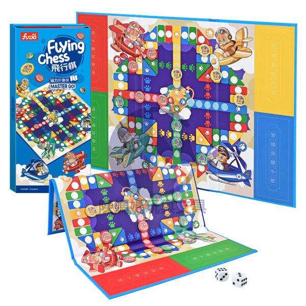 ★本產品帶有磁性,可以攤開三摺的摺疊棋盤,並使用內附的棋子或骰子,即 可直接在上面玩經典的桌遊棋!