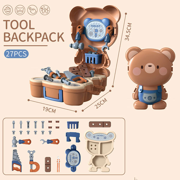 工具套裝包括:扳手、手鉗、鐵鎚、螺絲、螺帽等。 這個工具組有很多配件,讓你的孩子忙碌幾個小時的樂趣。