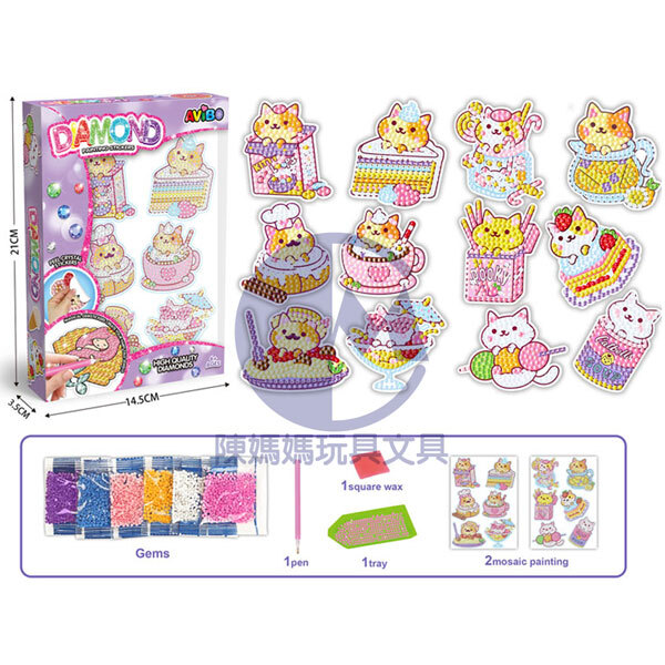 ★鑽石貼紙套裝包含多張閃亮鑽石貼紙、1支點鑽筆、1片果凍膠、1個點鑽盤以及不同顏色小鑽石,每張貼紙都有獨特的設計,相信您一定會喜歡