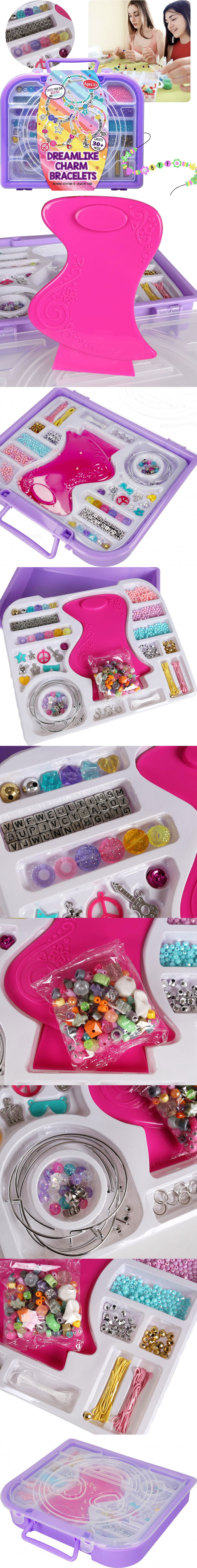 ★套裝包含:9 種不同顏色、尺寸、形狀和質地的串珠,3 根穿線繩,一個手鍊製作器,一些吊墜,以及一個用於穿串飾的底圈